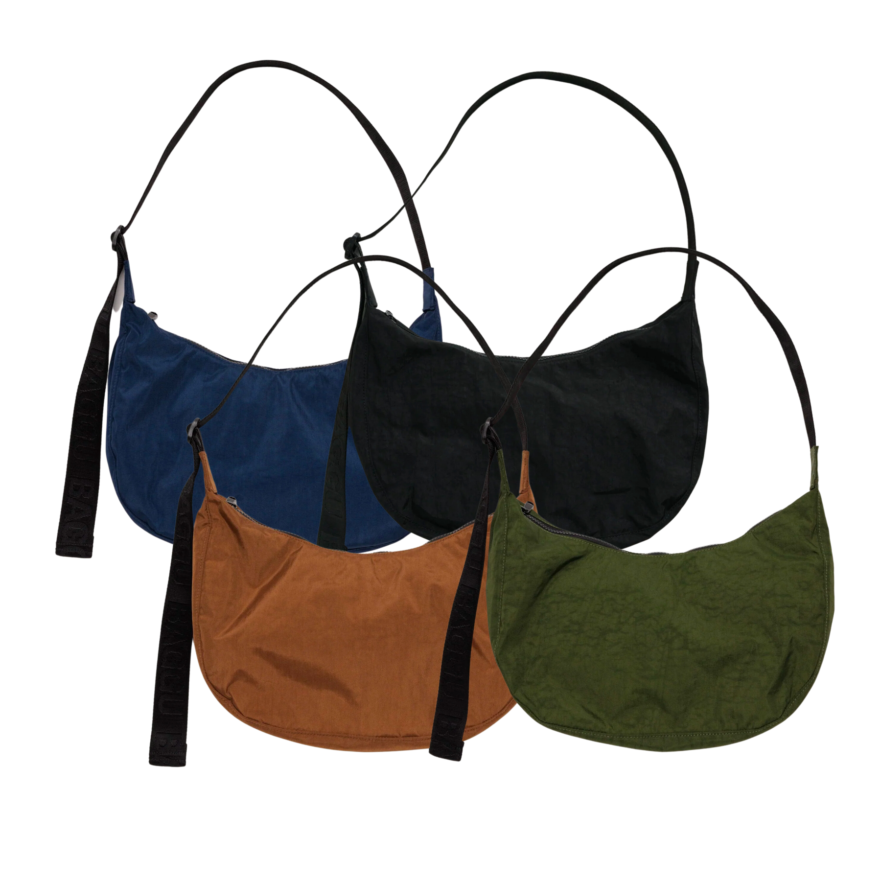 You guys love baggu!! And so do we, obviously. We've been highly influenced, and our collection is growing stronger and stronger by the day. It's hard to stop buying them....they have the BEST colors, best prints, most versatile styles. We've even added their accessories like hats & socks to our mix of inventory. The top seller though? This little cutie right here: The Medium Nylon Crescent Bag
