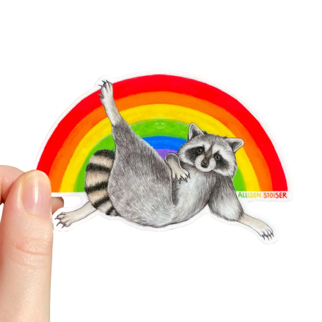 Rainbow Lounging Raccoon Pride Vinyl Sticker