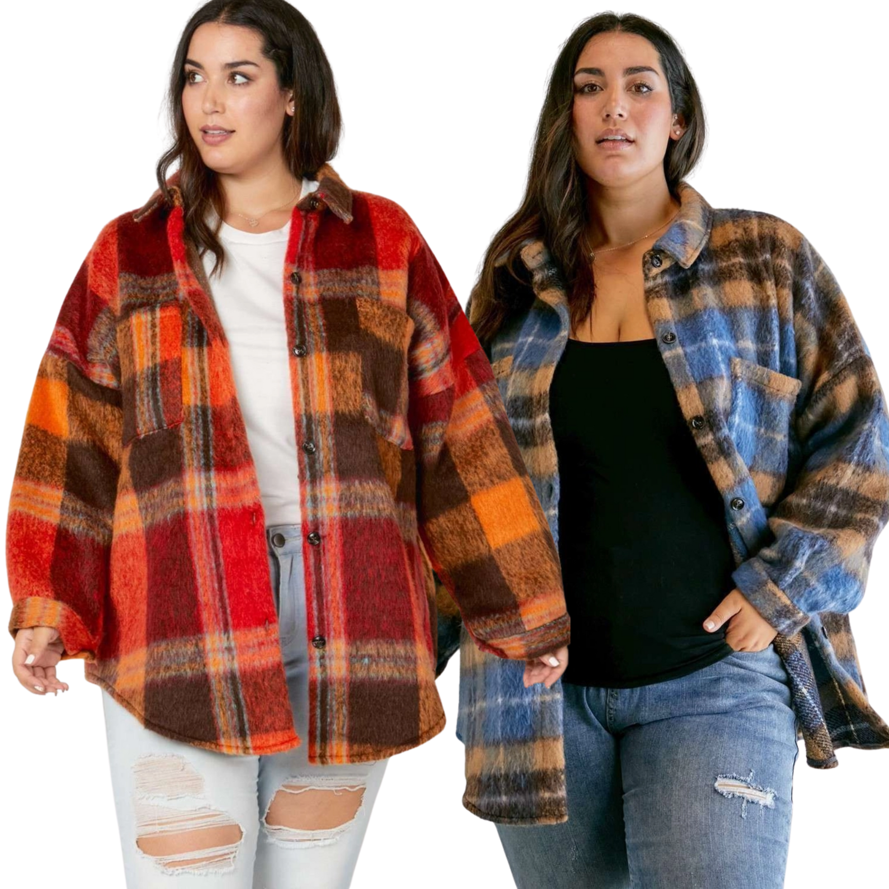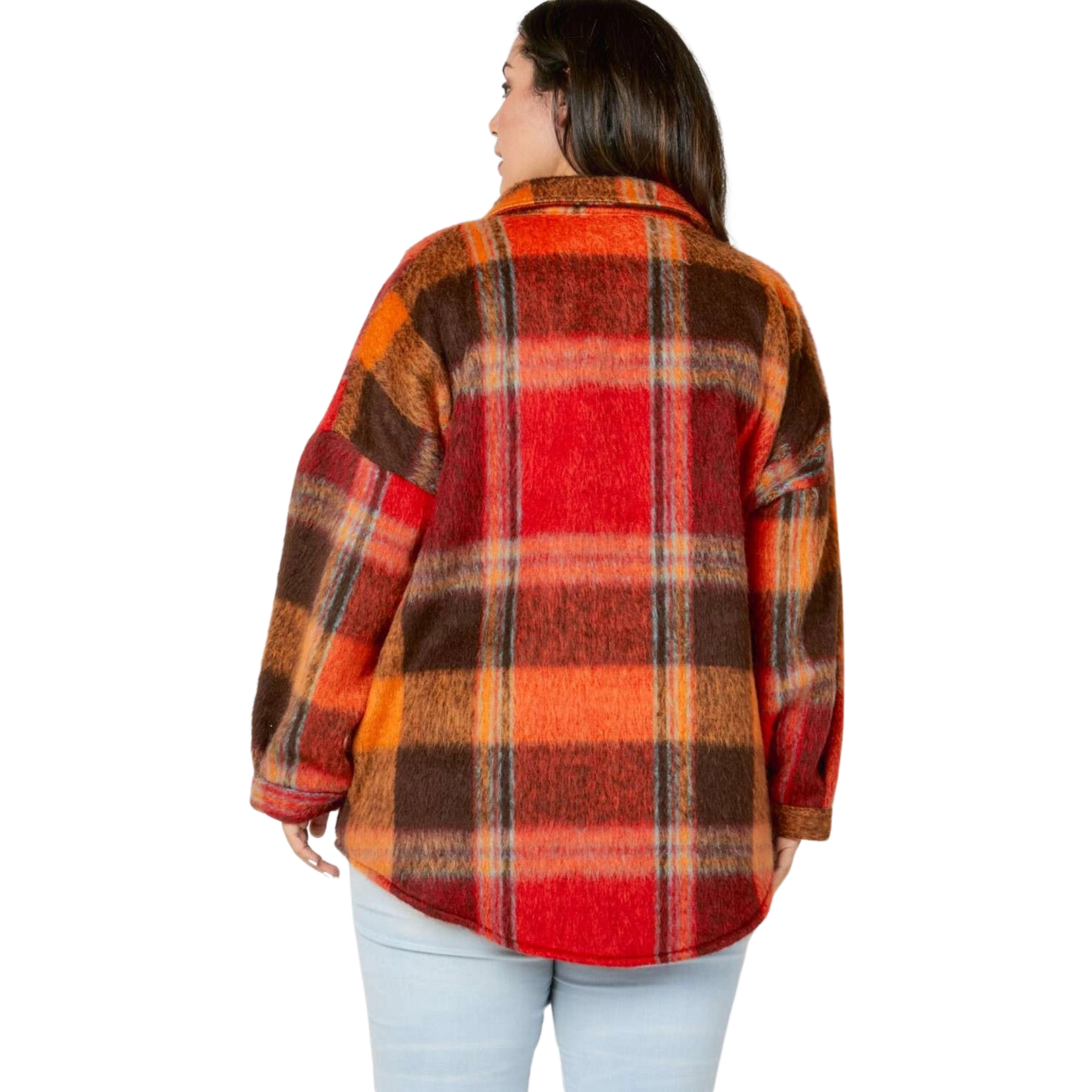 This Plus Plaid Button Down Shirt features a convenient front pocket and is made of 100% polyester, making it durable and easy to care for.