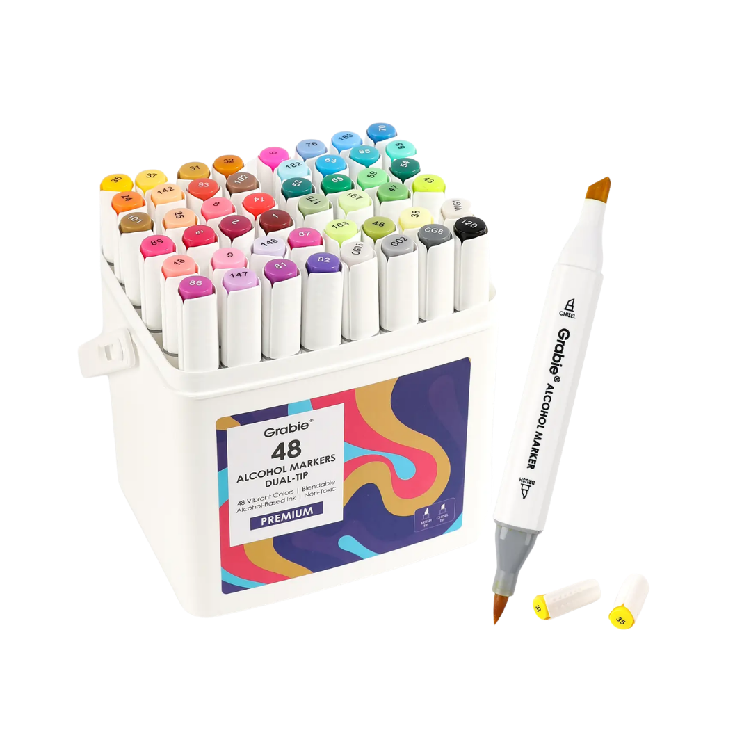 Dual-Tip Alcohol-Based Marker Set of 48 with Coloring Book