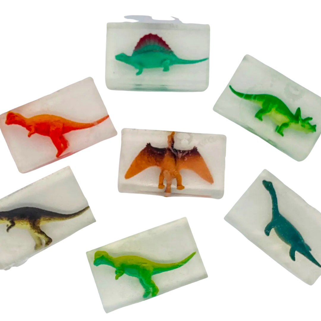 Each soap measures 1 1/2” x 2 1/2” and is made from high quality crystal clear hypoallergenic glycerine soap and is shrink wrapped to preserve quality.