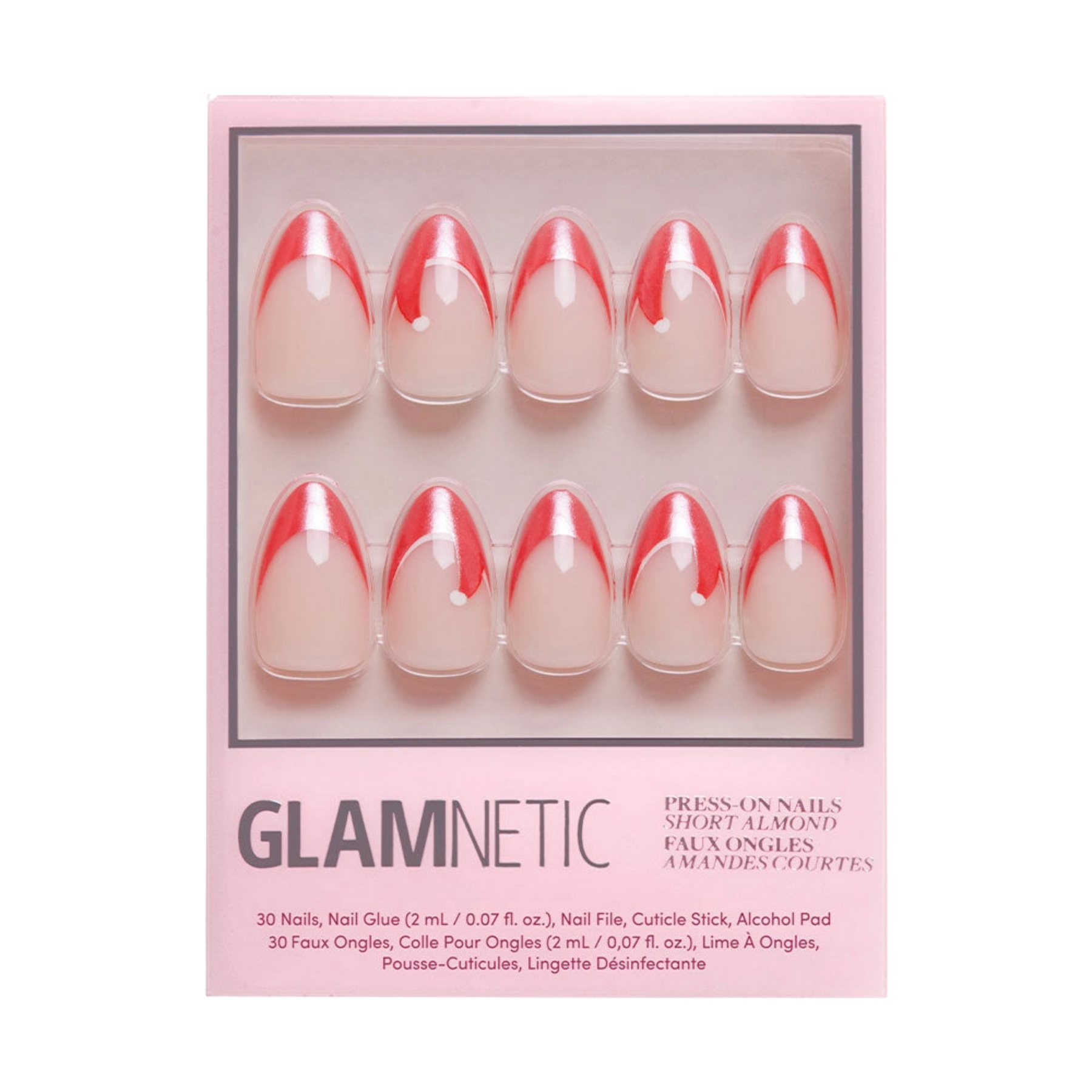 Meet the merriest mani of the season. This festive set pairs a bold red French tip with the cutest little Santa-hat moment, all topped with that crave-worthy glazed finish. The short almond shape keeps things comfy, cozy, and totally wearable — perfect for cookie-baking parties, holiday strolling, and adding a little North Pole sparkle to the everyday.
