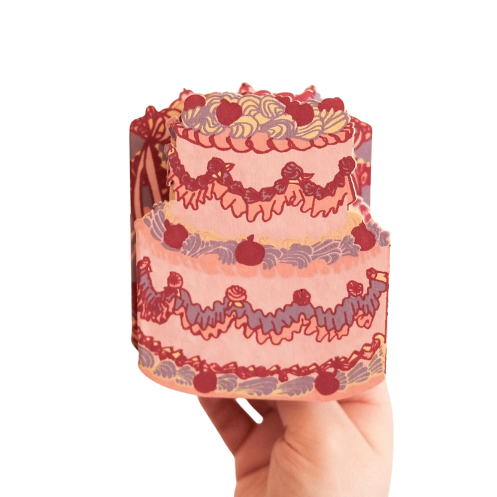 A birthday card that really pops. This charming concertina-style greeting card unfolds to reveal a sweet birthday cake design — a delightful way to send a short note, invitation, or meaningful message that instantly brightens someone’s day.