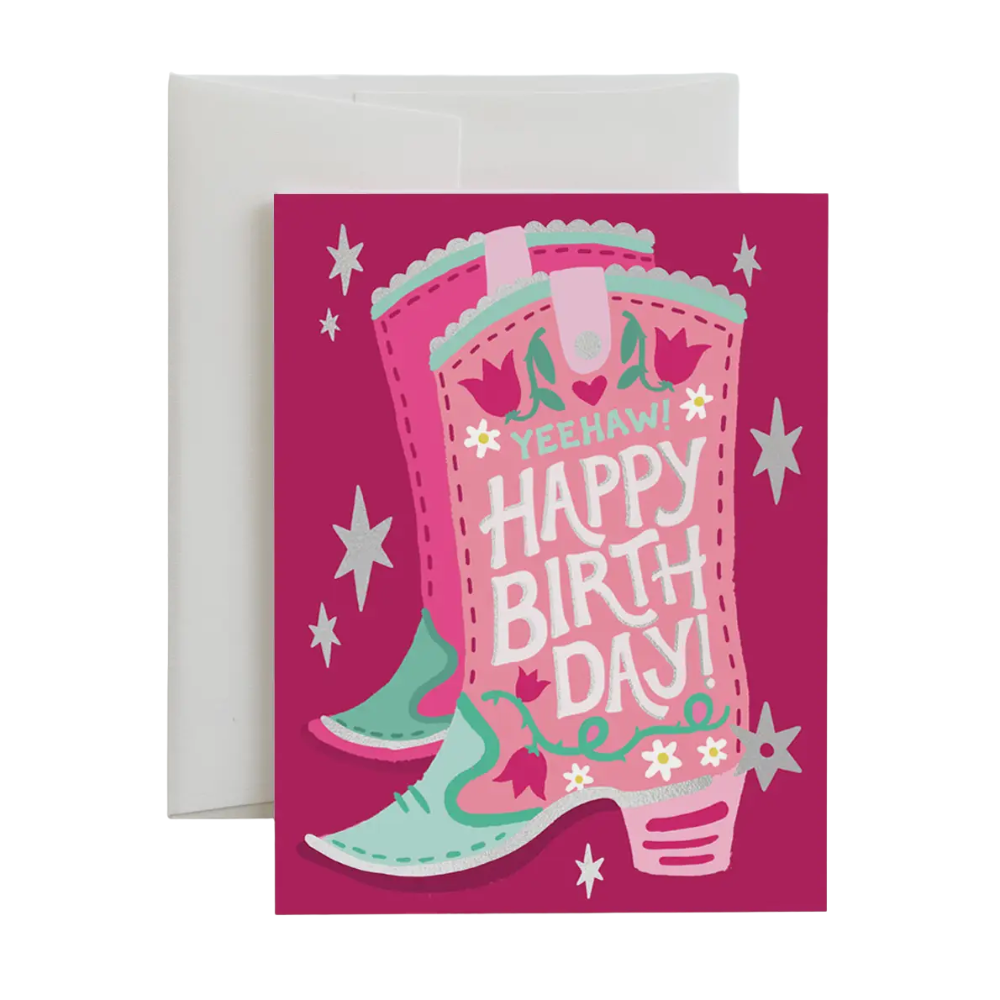This hand-painted birthday boot—decked out in magenta, pink, and aqua with shiny silver foil accents—is ready to kick up some serious birthday cheer. Perfect for the birthday girl who’s equal parts sparkle and sass.