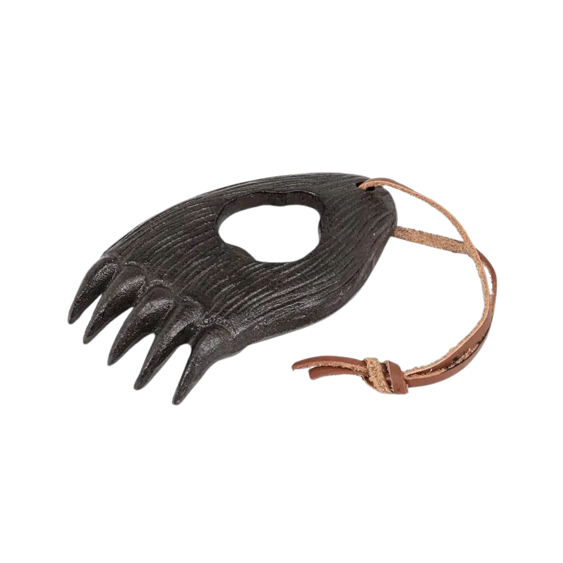 Crack open your next cold one with a little help from the wild side! This rustic cast iron bottle opener is shaped like a bear paw—complete with textured details that make it look like it just stepped out of the forest. Finished with a leather loop for easy hanging, it’s the perfect companion for cabins, lake houses, and cozy rec room vibes.