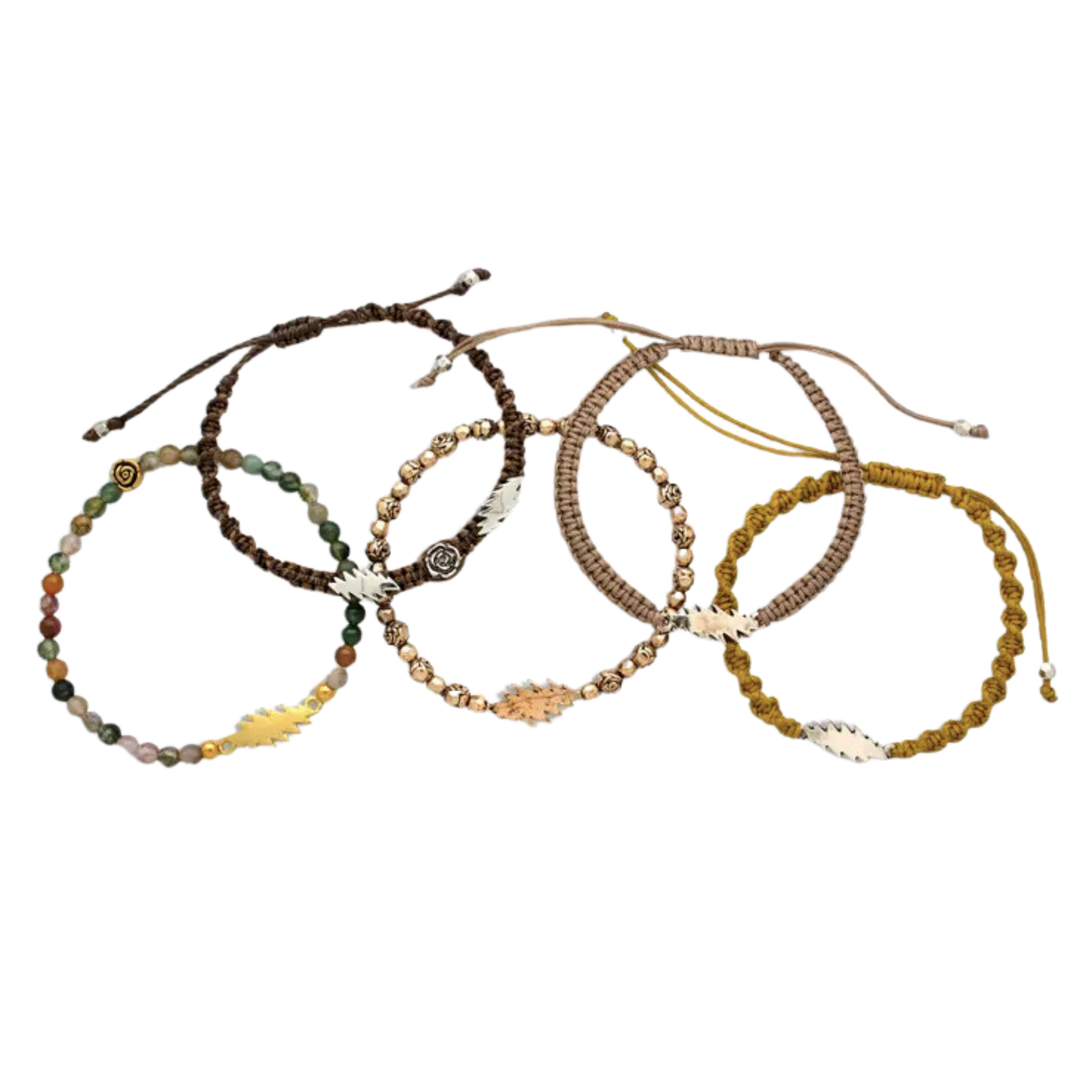 - A set of 5 Grateful Dead stacking bracelets in natural, earth tones: