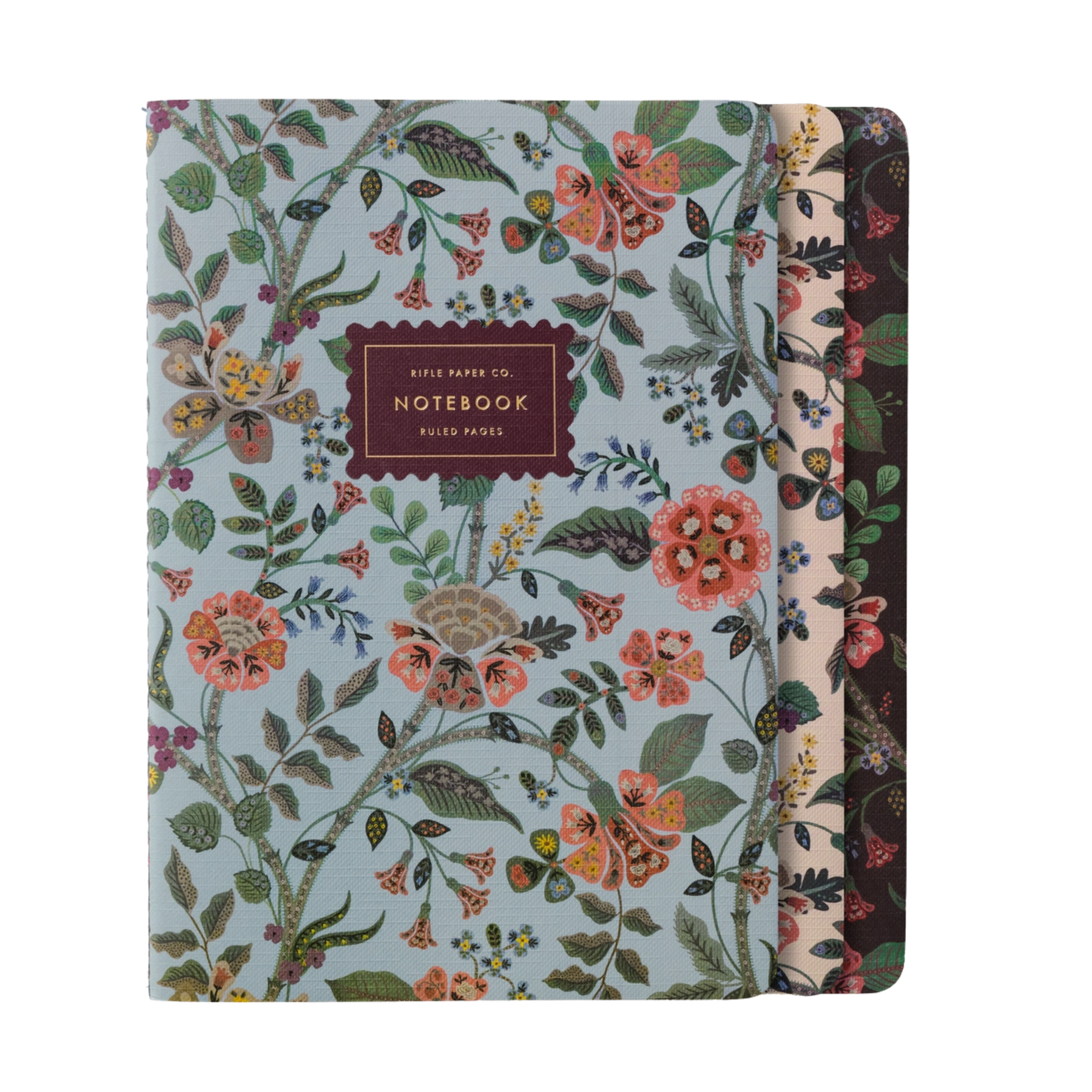 Stay organized in style with this charming trio of notebooks. Featuring our signature Gracie pattern in three complementary colorways, each notebook includes 64 ruled pages, stitched binding, and elegant gold foil accents. The lay-flat design makes journaling, note-taking, or list-making a breeze—perfect for work, school, or everyday thoughts.