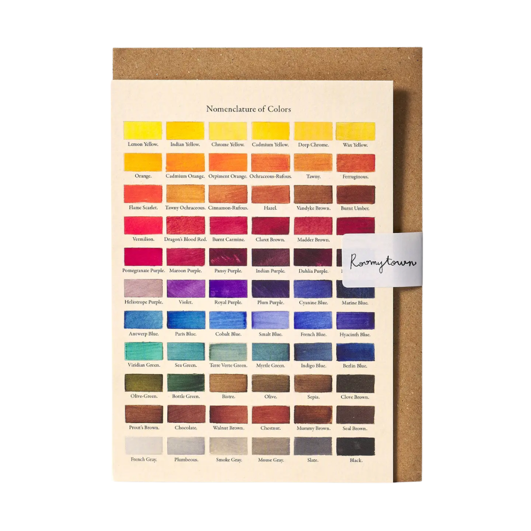 Celebrate the beauty of color history with this A6 greetings card, featuring ornithologist Robert Ridgway’s iconic 1886 display of color swatches. Originally used to standardize bird color descriptions, his meticulous chart is now reimagined as a striking piece of stationery art.