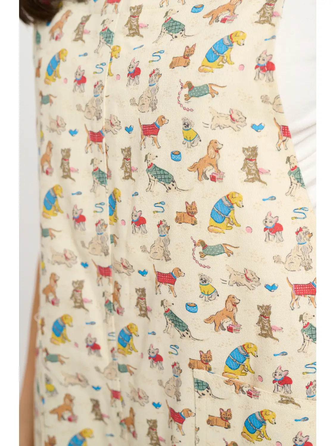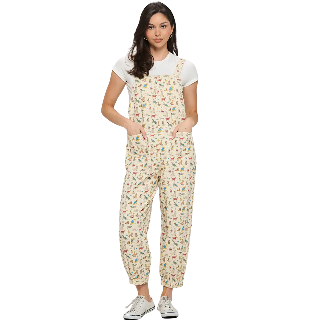 These overalls are paws-itively perfect for your next style adventure. Featuring a playful print of vacationing dogs—think beach balls, sun hats, and sandy snoozes—this cheerful design brings the vacation vibes wherever you go.