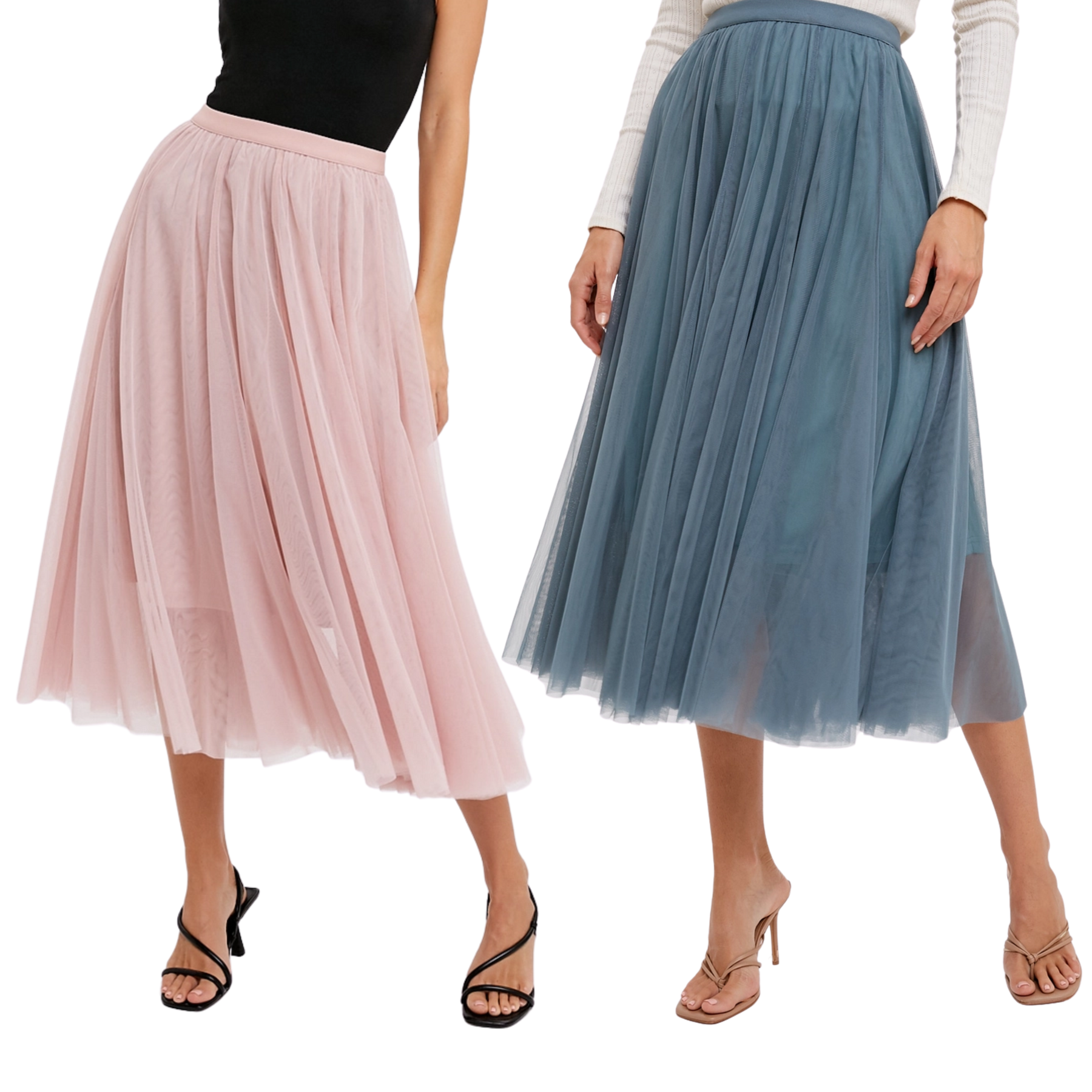 Float through your day in this dreamy tulle skirt. With a gathered A-line silhouette and a comfy elastic waistband, it’s made for twirling, layering, and turning heads—no special occasion required.