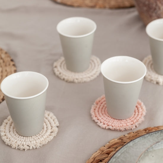Made from organic cotton, these spiral macrame coasters are the perfect resting place for your drinks or candles. The texture brings warmth and design to any space while also being a practical solution.