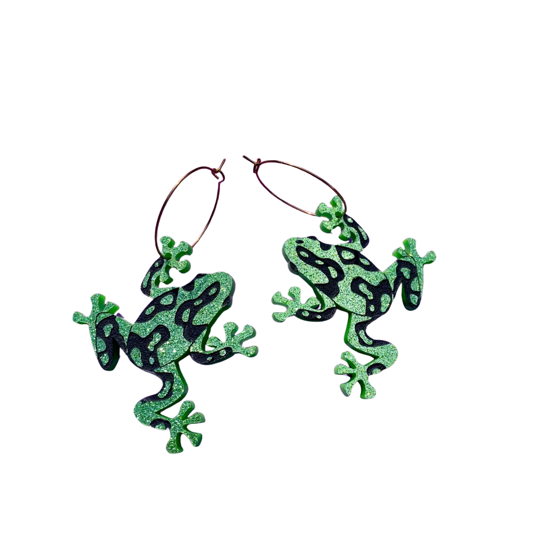🐸 Poison Dart Frog Earrings – Small Frogs, Big Sass