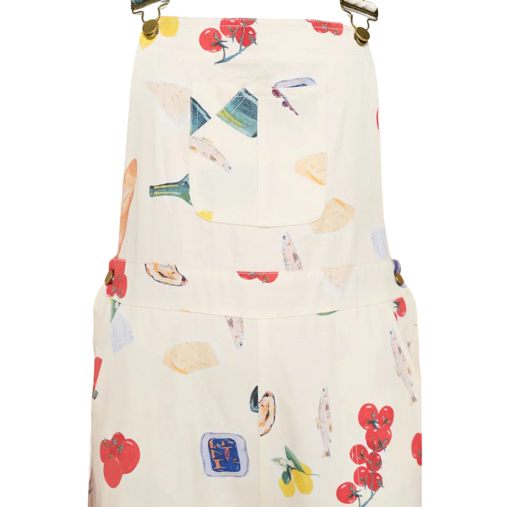 These whimsical overalls are covered in a playful print of springtime treats—think sunshine, sweets, and all things picnic-perfect. With a comfy, relaxed fit and tons of charm, they’re made for sunny strolls, market mornings, and park lounging.