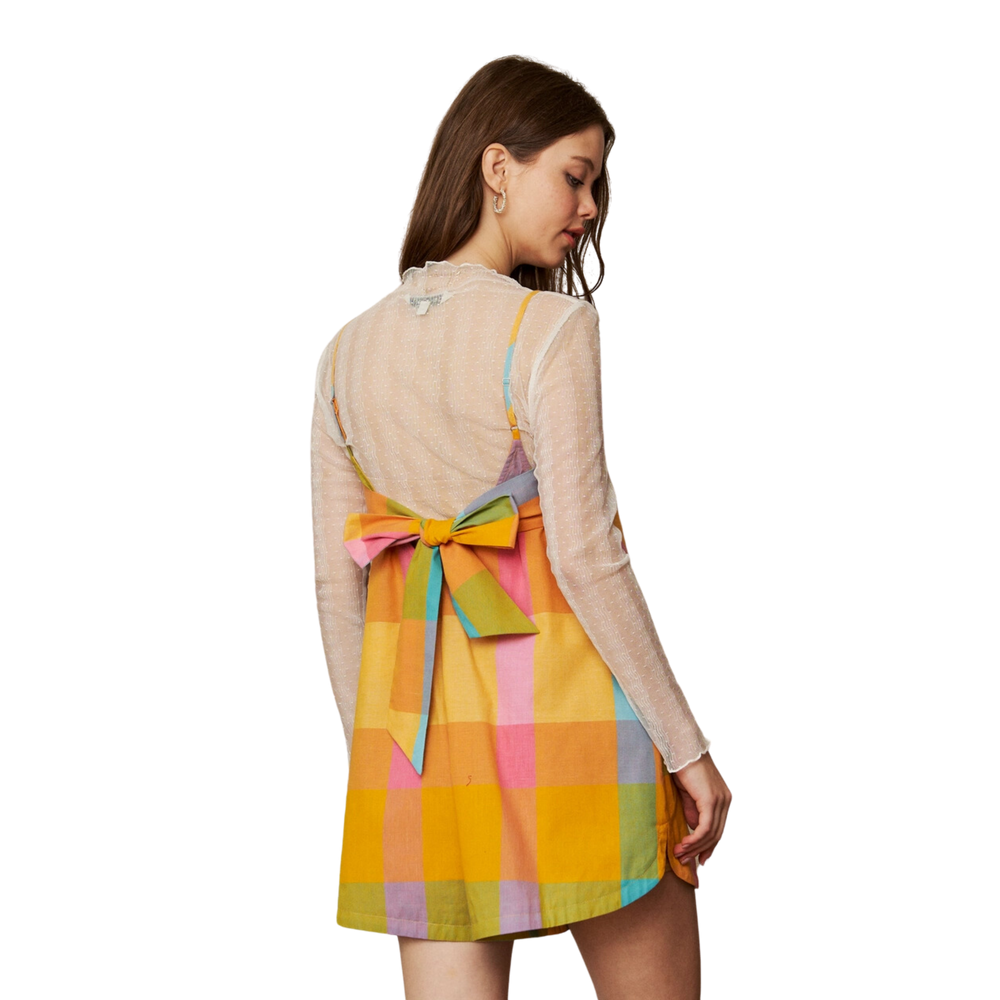 🌈 Strappy Tie Back V-Neck Romper – Multi Plaid 🎀
