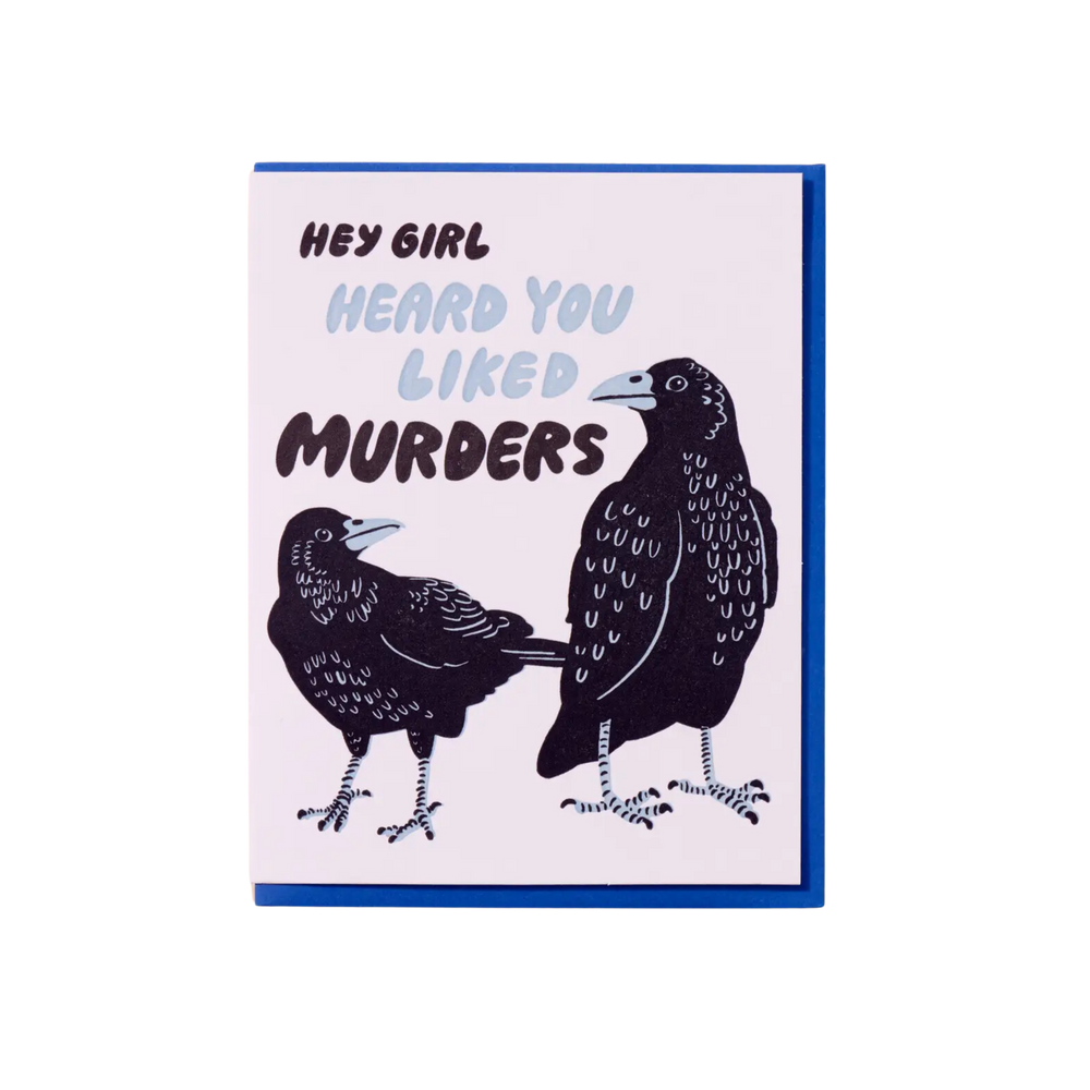 🔪 Hey Girl, I Heard You Liked Murders – Letterpress Card for Your Favorite True Crime Babe 🖤