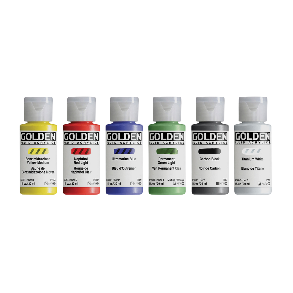 Golden Fluid Acrylics - Intro Colors, Set of 6, 30 ml
