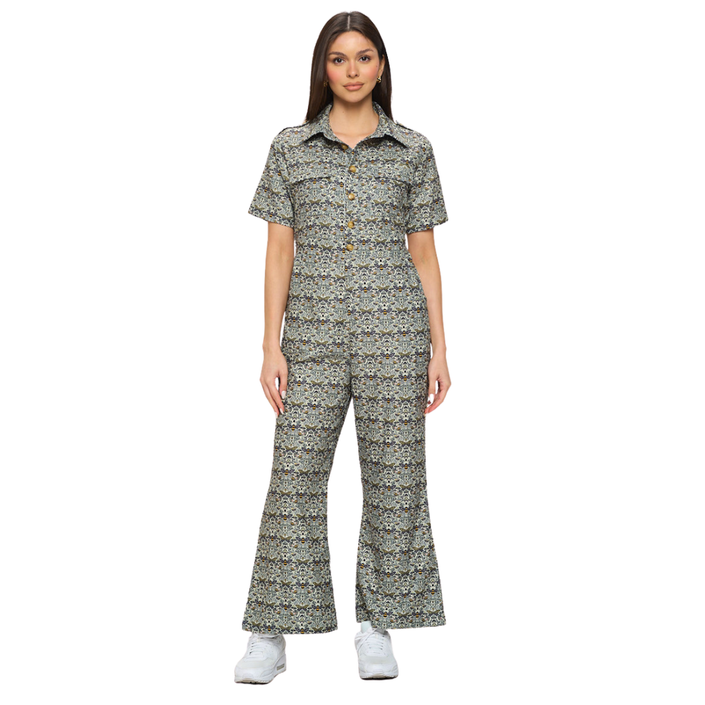 Step into whimsy with this bee-utifully fun overall jumpsuit! Featuring a playful all-over print of buzzing bees and tiny mushrooms, it’s the perfect blend of cozy corduroy texture and quirky charm. The relaxed fit makes it easy to layer with your favorite tees or sweaters, while adjustable straps keep it comfy all day long.