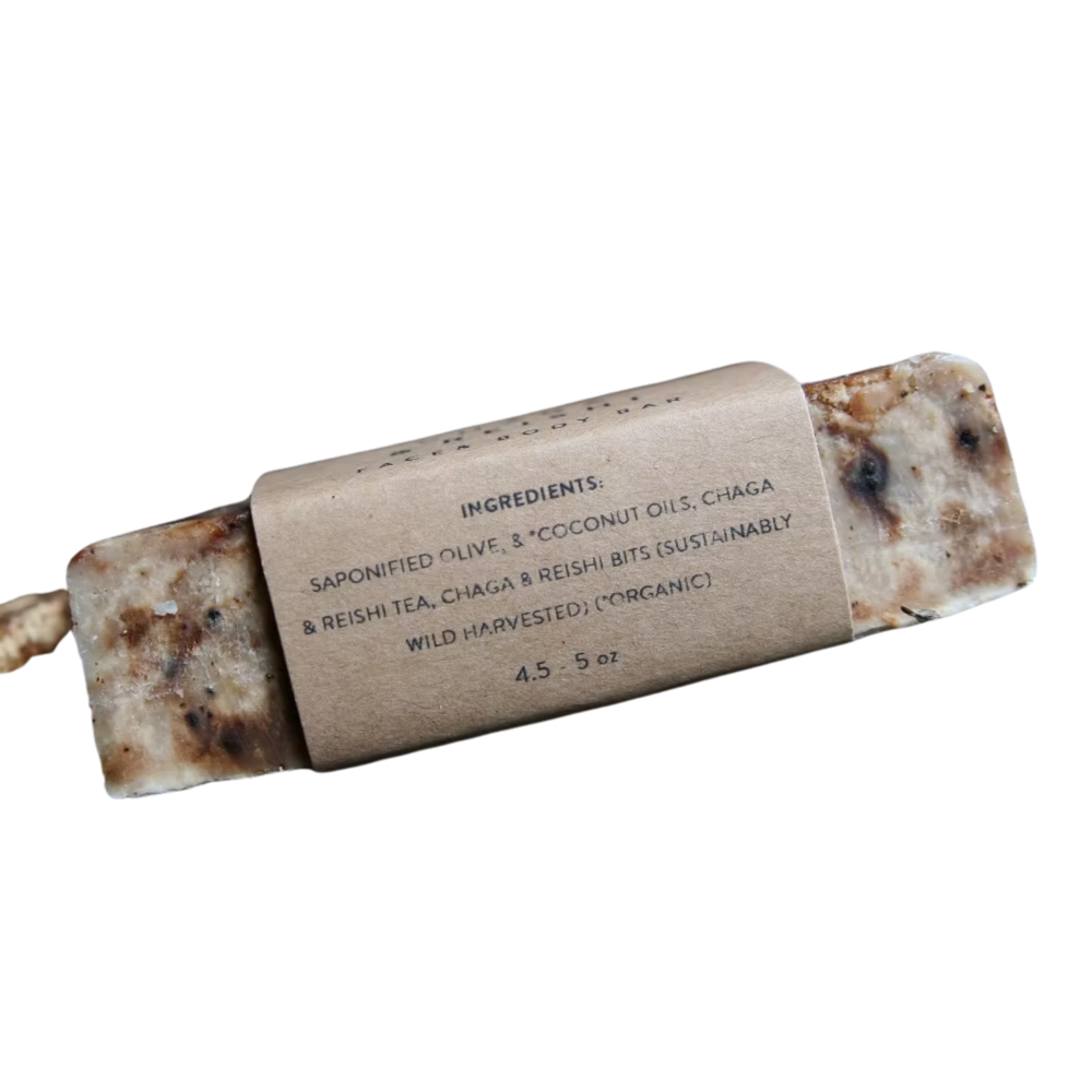 Infused with the powerful properties of chaga and reishi mushrooms, this earthy, nourishing soap supports skin wellness from the outside in. Crafted in small batches using the traditional cold kettle method.