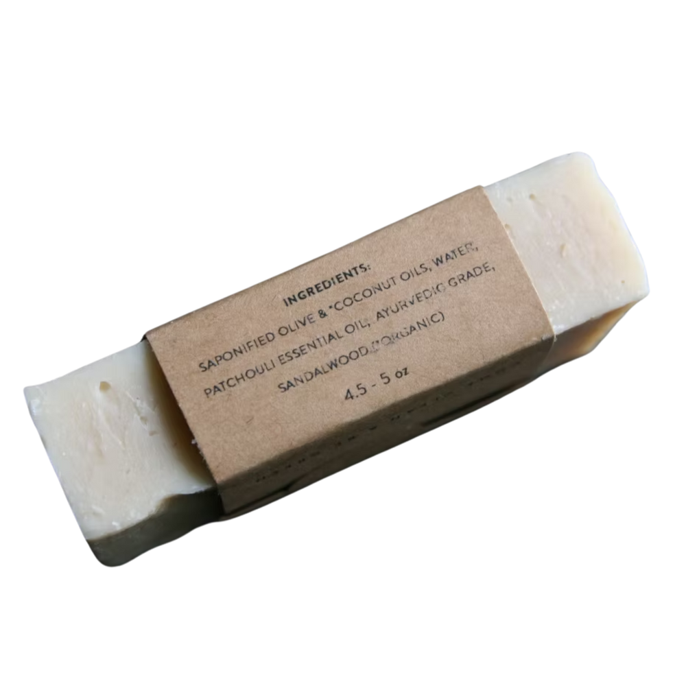 🌱 Ingredients: Saponified olive & coconut oils, water, patchouli essential oil, sandalwood essential oil, sandalwood powder