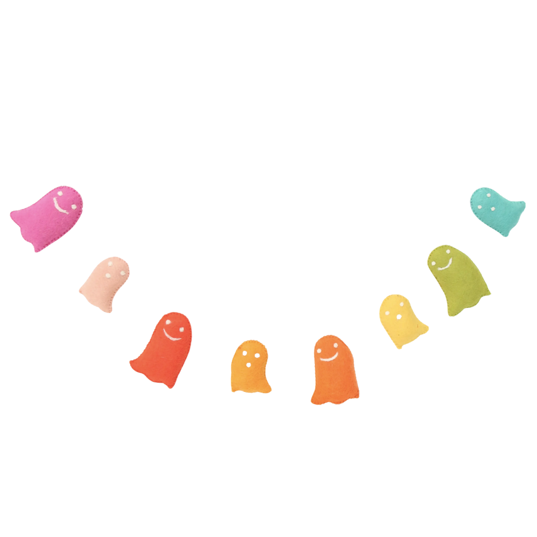 Measures 6' Long and comes in a metallic rose gold bag. Ghosts are between 3-4" tall.