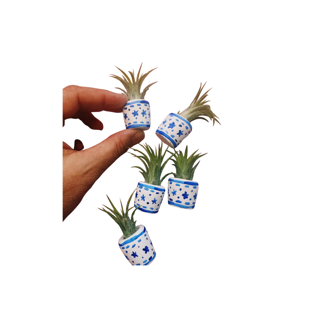 Blue and White Baby Planter with Air Plant