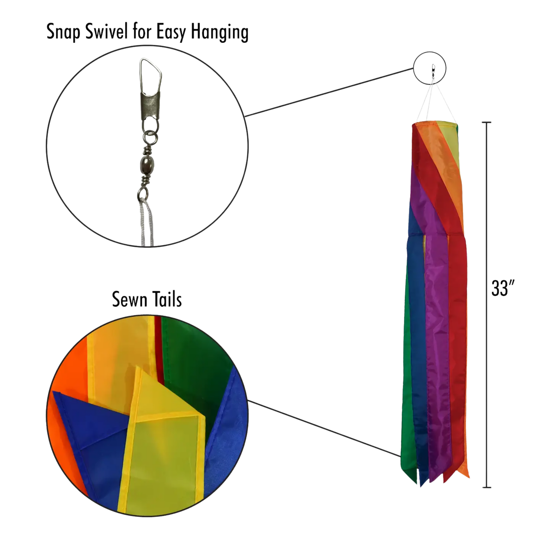 🌈 Rainbow Diagonal Windsock – 33"