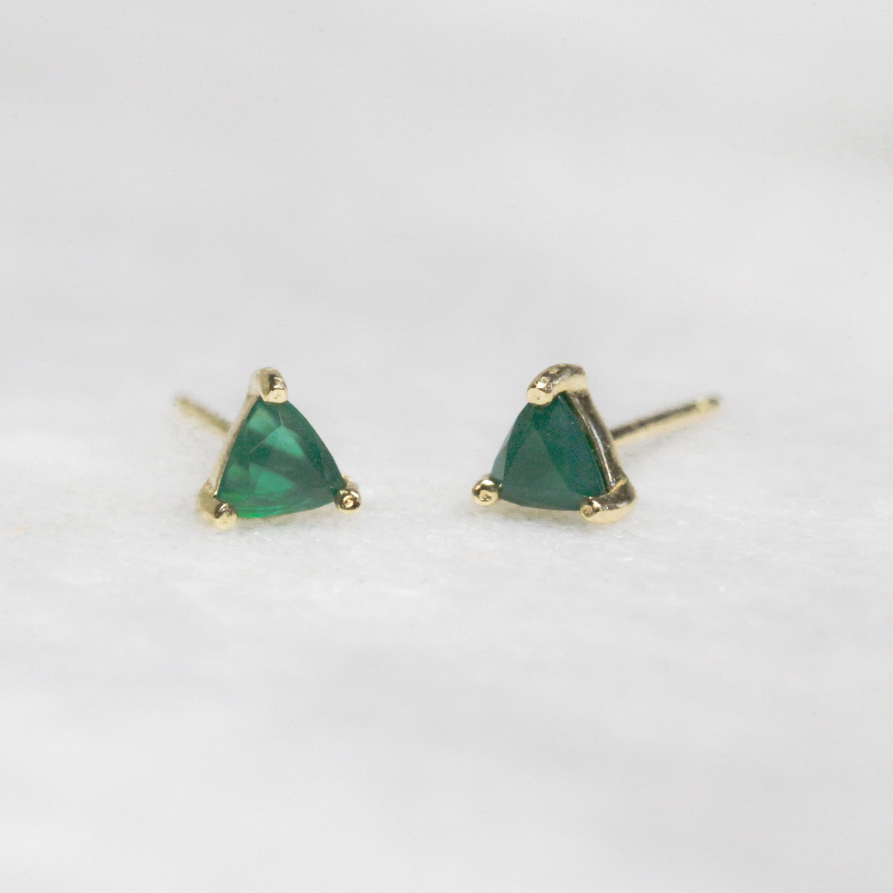 Each gem is 4.8 mm tall & held in an 18k gold-plated setting with a sterling-silver base.