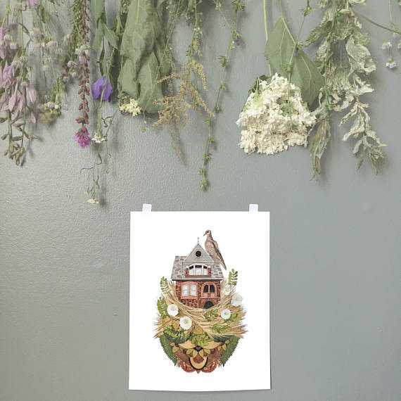 This is a quality reproduction of an original painting/drawing. The original was drawn in pen and then painted with watercolor on paper.