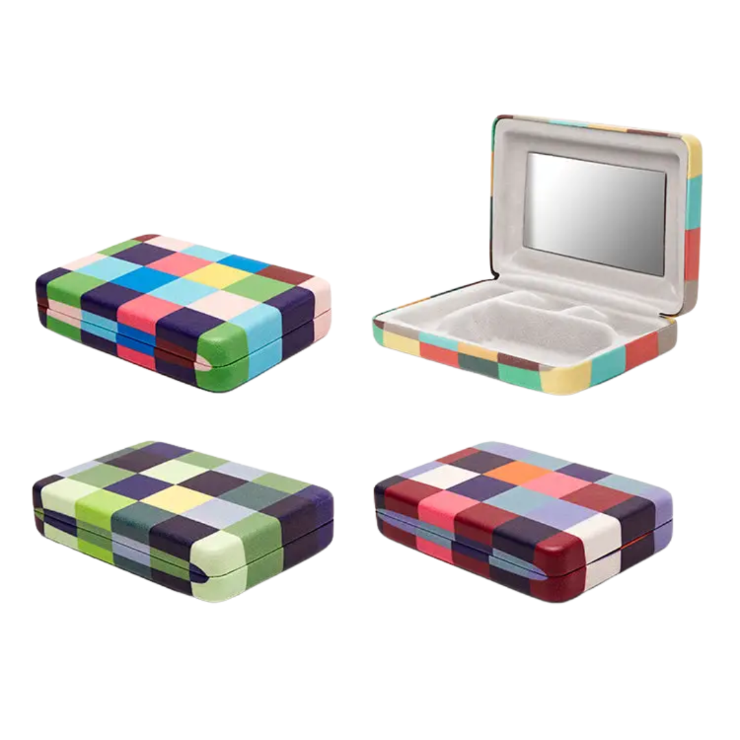 Pretty, plaid, and perfectly portable! This compact case keeps your favorite jewelry safe and stylish on the go. With four velvet-lined compartments and a built-in mirror, it’s your travel-ready treasure chest for rings, earrings, and little luxuries.