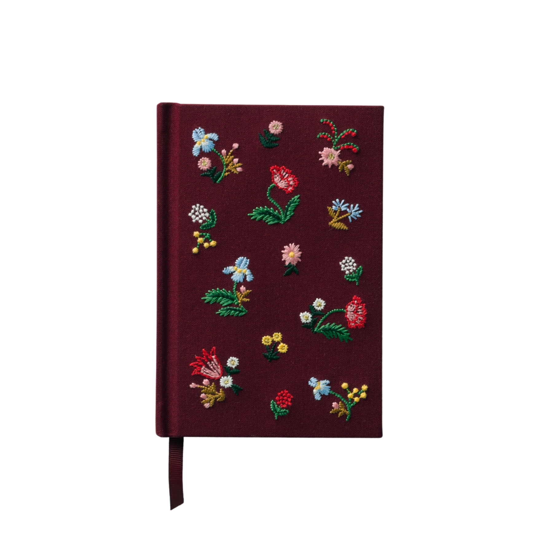 A mini hardcover journal embroidered with delicate Gracie blooms and finished with shimmering gold accents. Inside, you’ll find 240 blank, unlined pages—perfect for jotting notes, sketching, or daydreaming. A grosgrain ribbon bookmark saves your place, making this petite journal as pretty as it is practical.