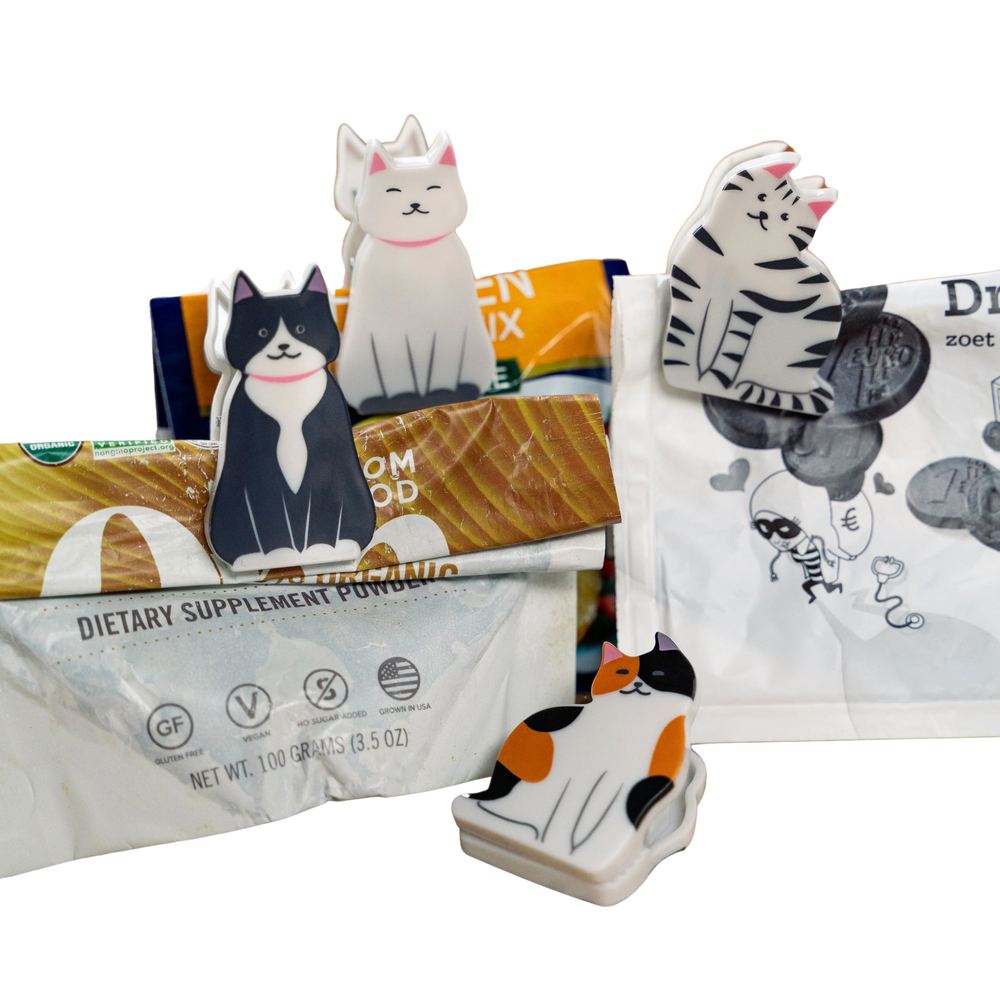Snacks live long and pawsper with these adorable cat-shaped bag clips! This set of 4 unique kitties is here to keep your food fresh—and steal your heart while they’re at it.