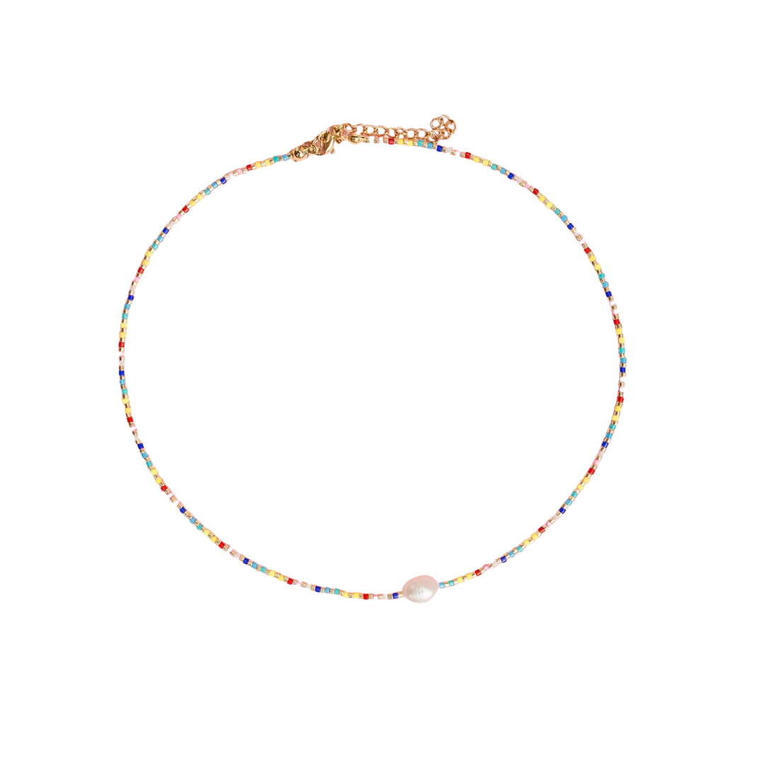 Add a pop of color (and a dash of charm) to your jewelry stack with this vibrant beauty! Featuring a unique freshwater pearl paired with rainbow-hued and gold accent beads, this necklace is the perfect balance of playful and polished.