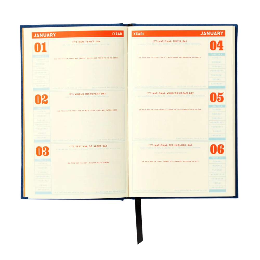 ā Pre-Filled with Fun ā 366 days (208 pages) of random holidays, celebrity birthdays, and trivia