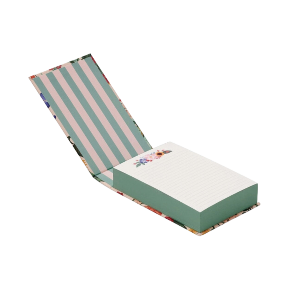 These desktop notepads are designed for display, wherever you need to jot something down. 200 tear-off sheets feature printed designs and contrasting edge painting, protected by a hardcover with gold foil accents.