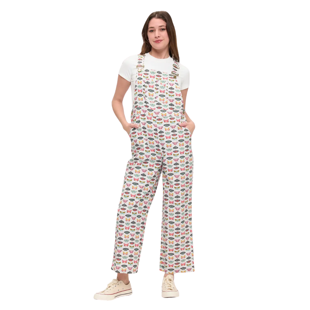 A bright, nature-inspired standout! These overalls feature a detailed, scientific-style print of colorful butterfly species on a crisp white backdropāfull of movement, color, and charm.