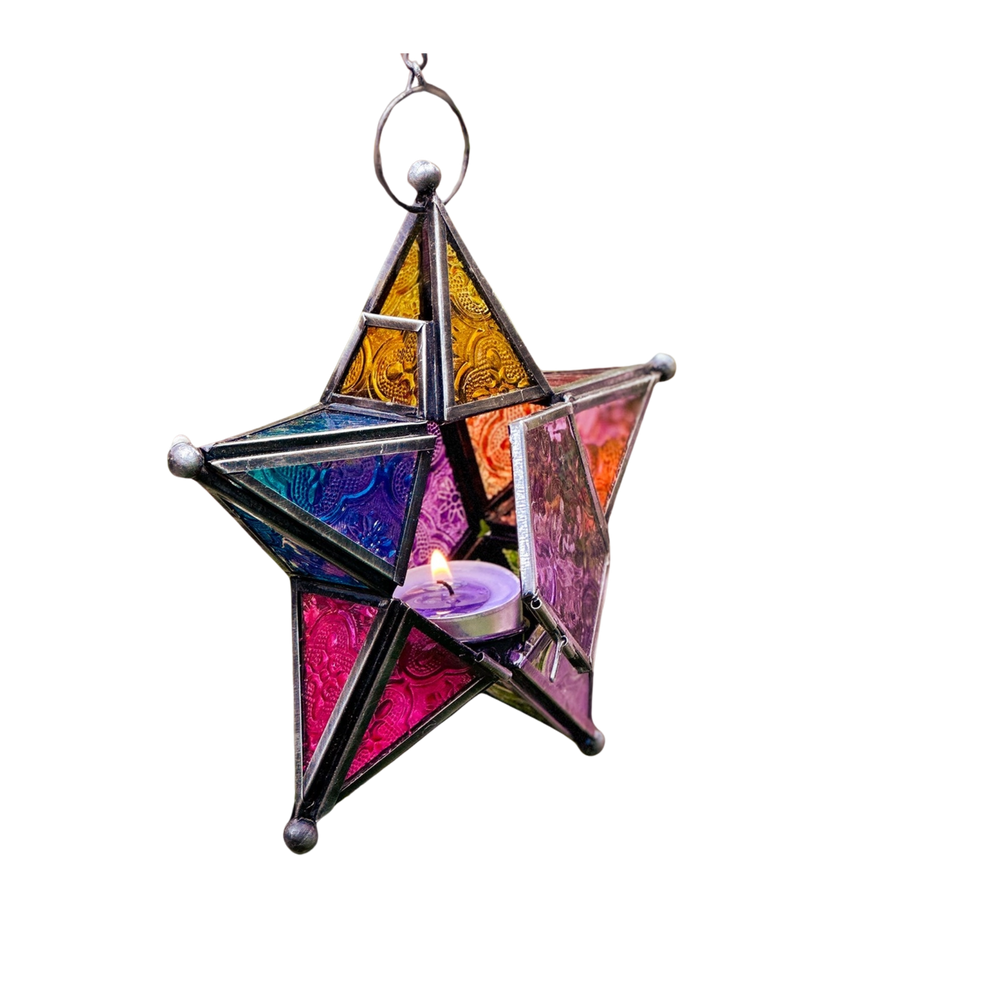 Rainbow 5-Point Star Hanging Tealight Lantern