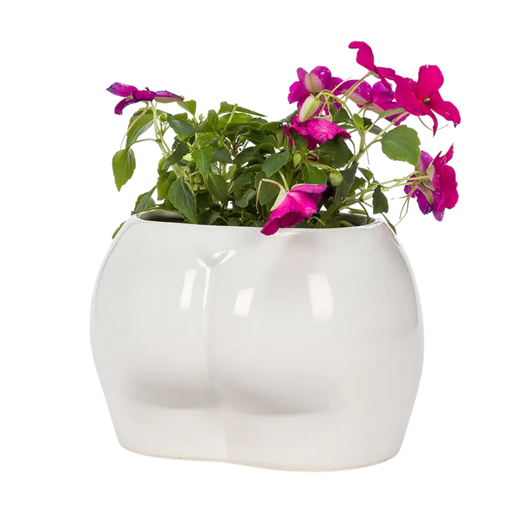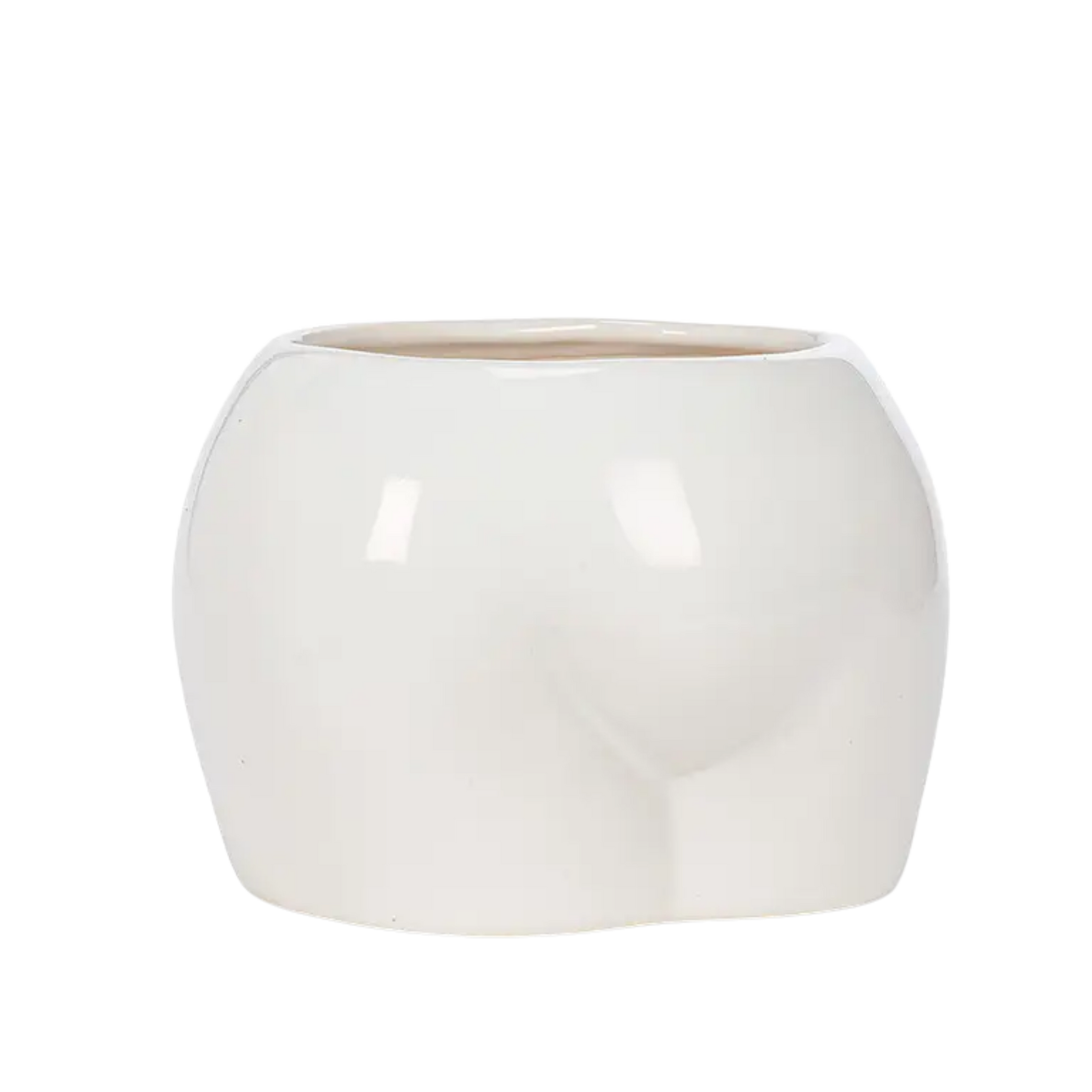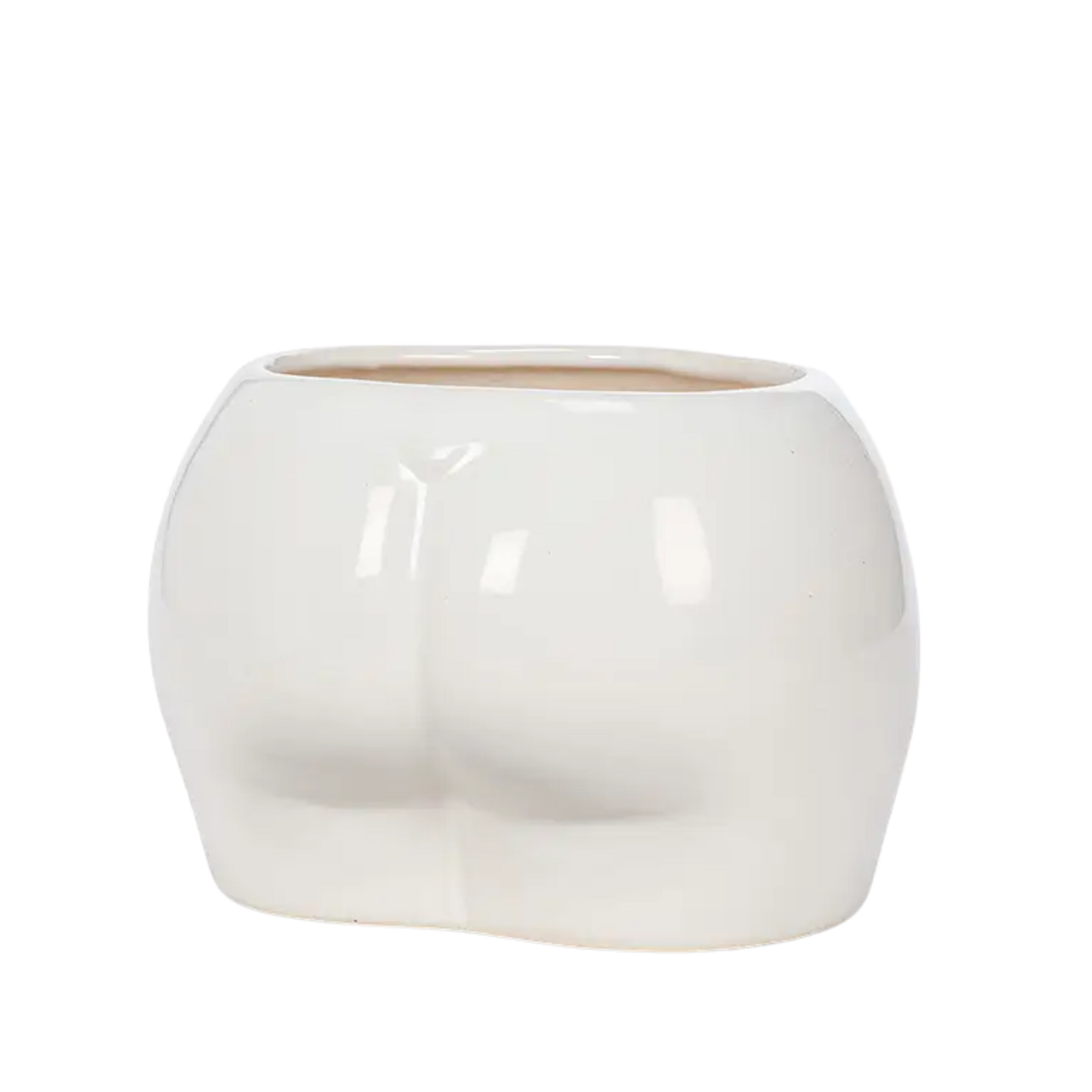 Talk about a cheeky plant upgrade! This curvy stoneware planter brings the booty-ful vibes with a glossy white finish and shapely silhouette. Perfect for succulents, cacti, or any leafy babe who deserves a bold display 💃🌿