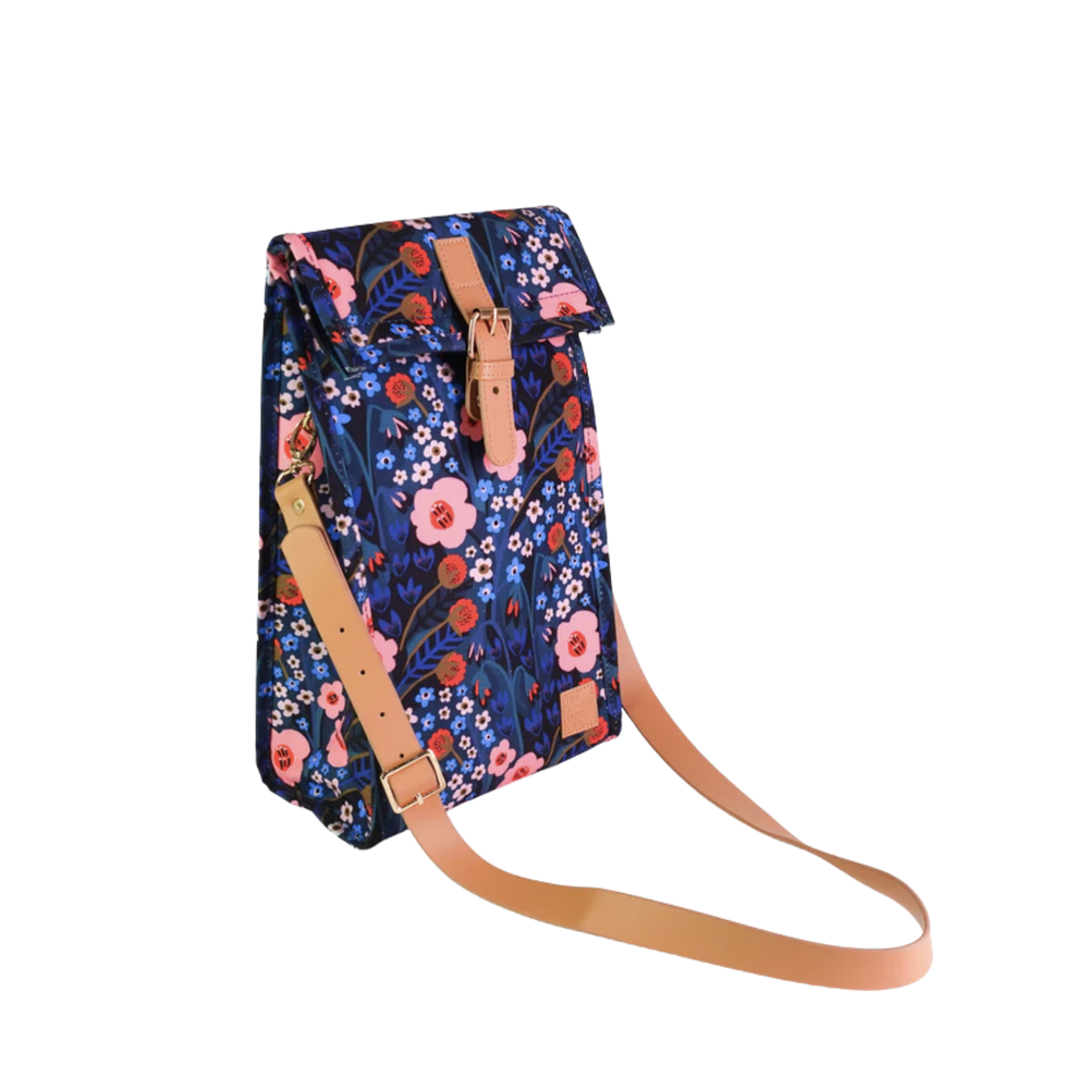Features a detachable vegan leather shoulder strap so you can go hands free, and a buckle strap with magnetic closure so you can adjust it to suit different bottle sizes. Fits two standard bottles of wine and has a fabric divider to stop the bottles clanging together when you’re out and about.
