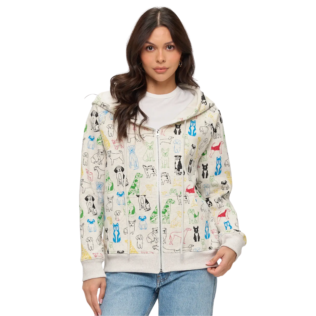 Colorful Graphic Dogs Print Zip Up Hoodie