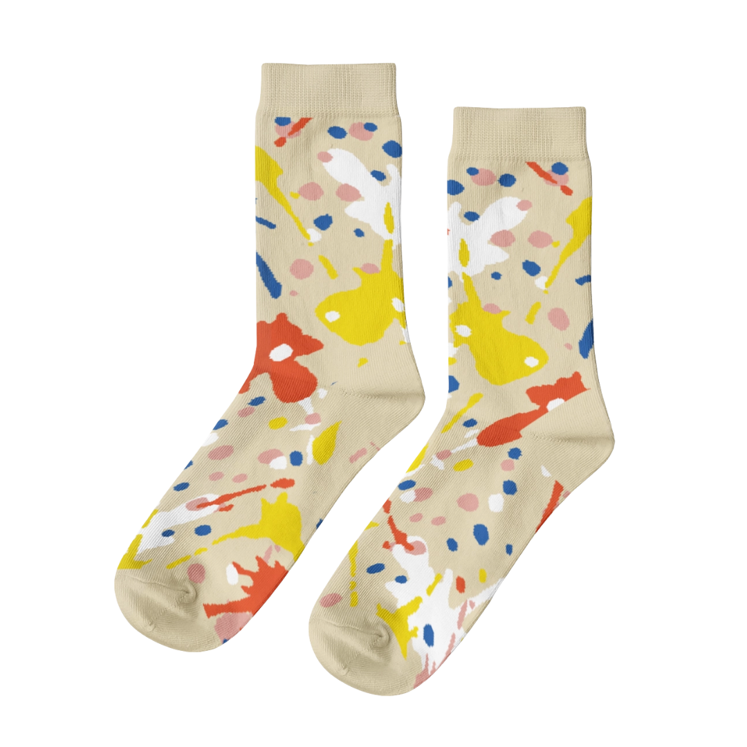 Pop Art Large Crew Socks - Cream