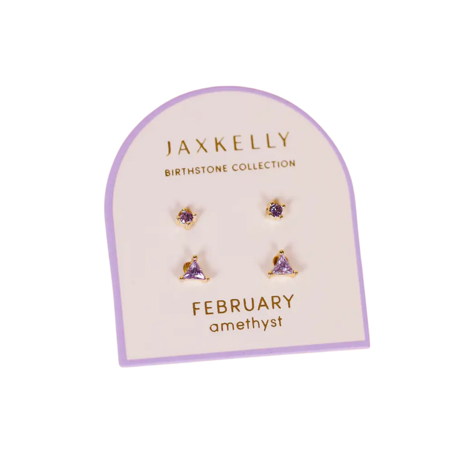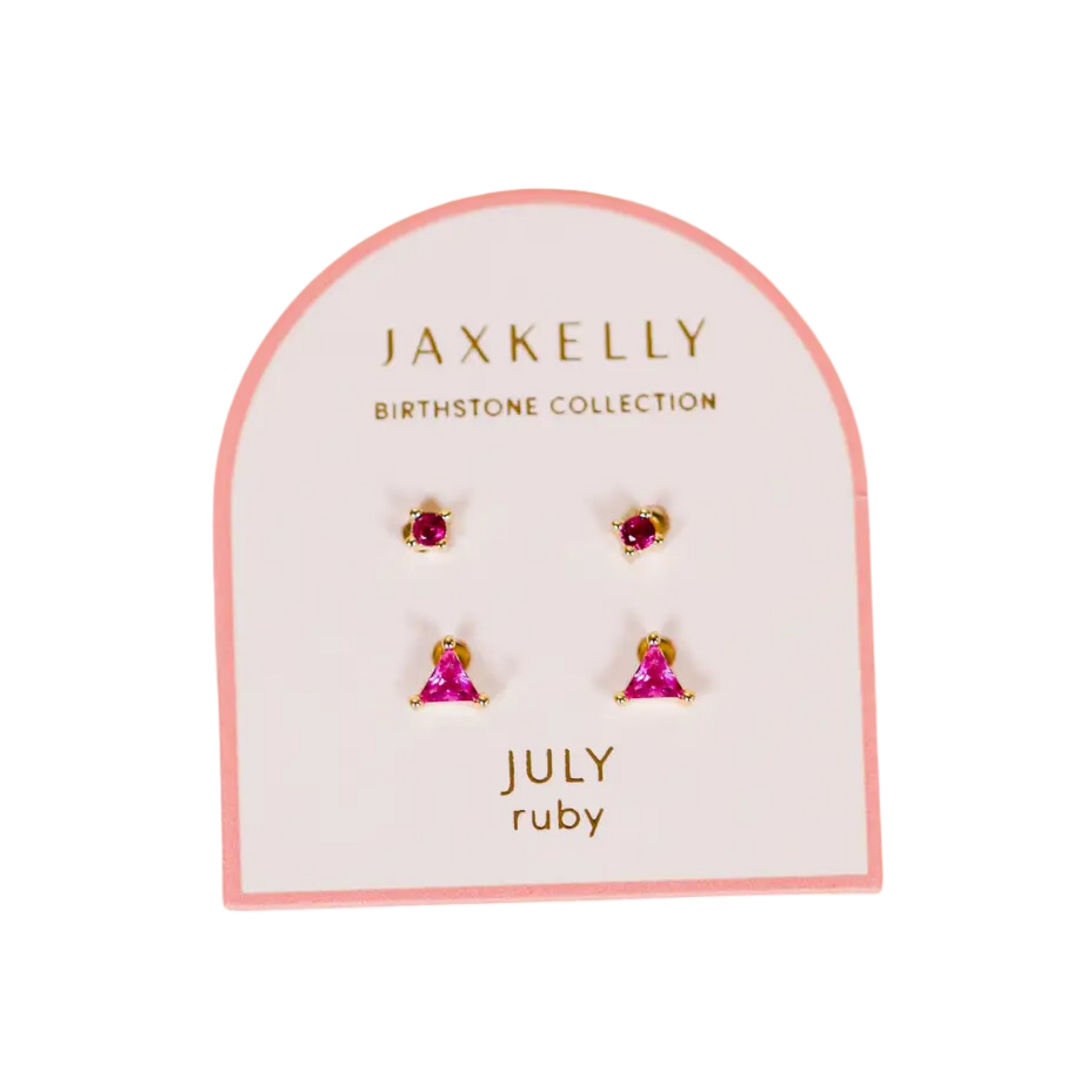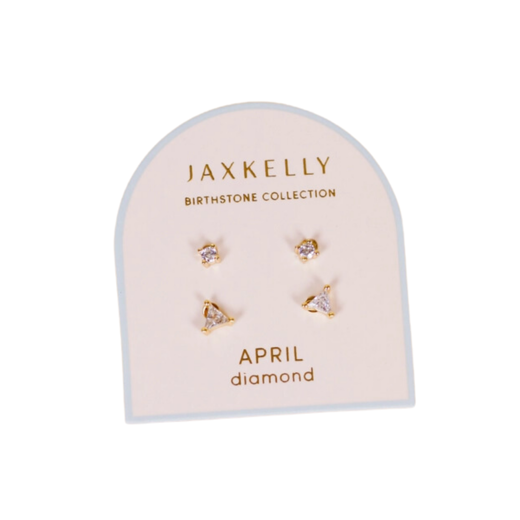 A thoughtful and timeless gift, this two-pair earring set features petite birthstone-inspired cubic zirconia studs in elegant shapes. Perfect for first, second, or third piercings, these delicate earrings add a personalized touch to any jewelry collection.