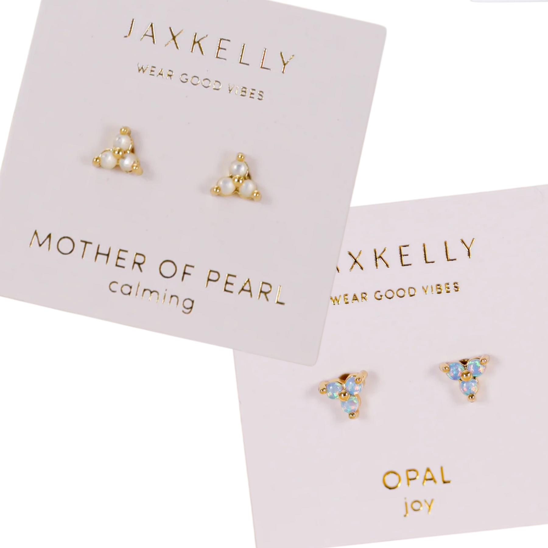 Delicate and radiant, these elegant studs feature a trio of stones—choose between fiery lab-grown opals or luminous freshwater pearls. A timeless addition to your jewelry rotation.