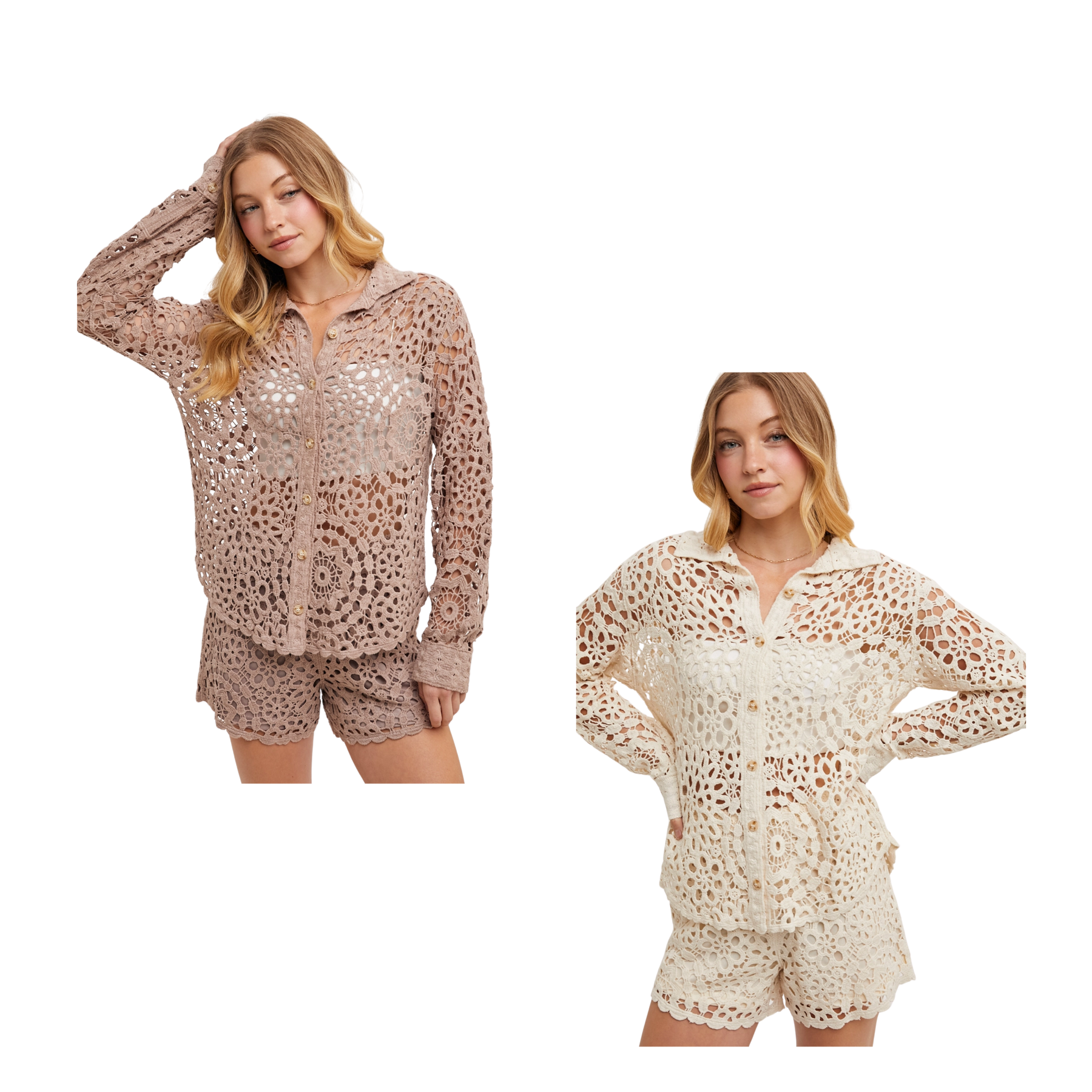 Crochet Button-Down Shirt – Mushroom or Natural 🍄☀️