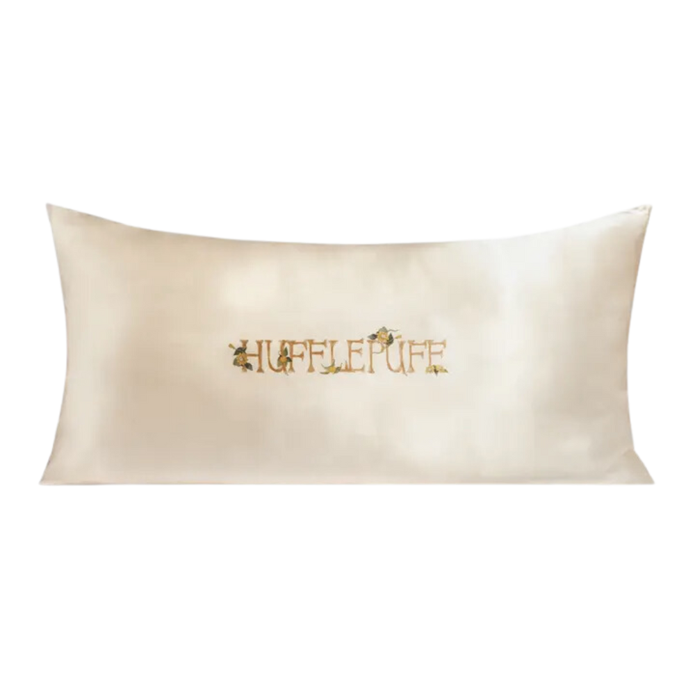 -Get your beauty sleep & rep your Hogwarts House pride with this satin pillowcase featuring Hufflepuff’s iconic badger crest