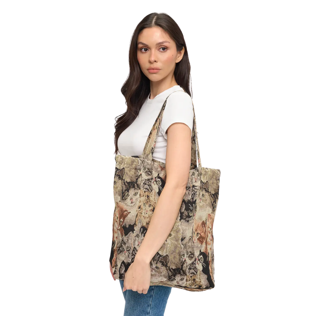 Cat Collage Print Tapestry Tote