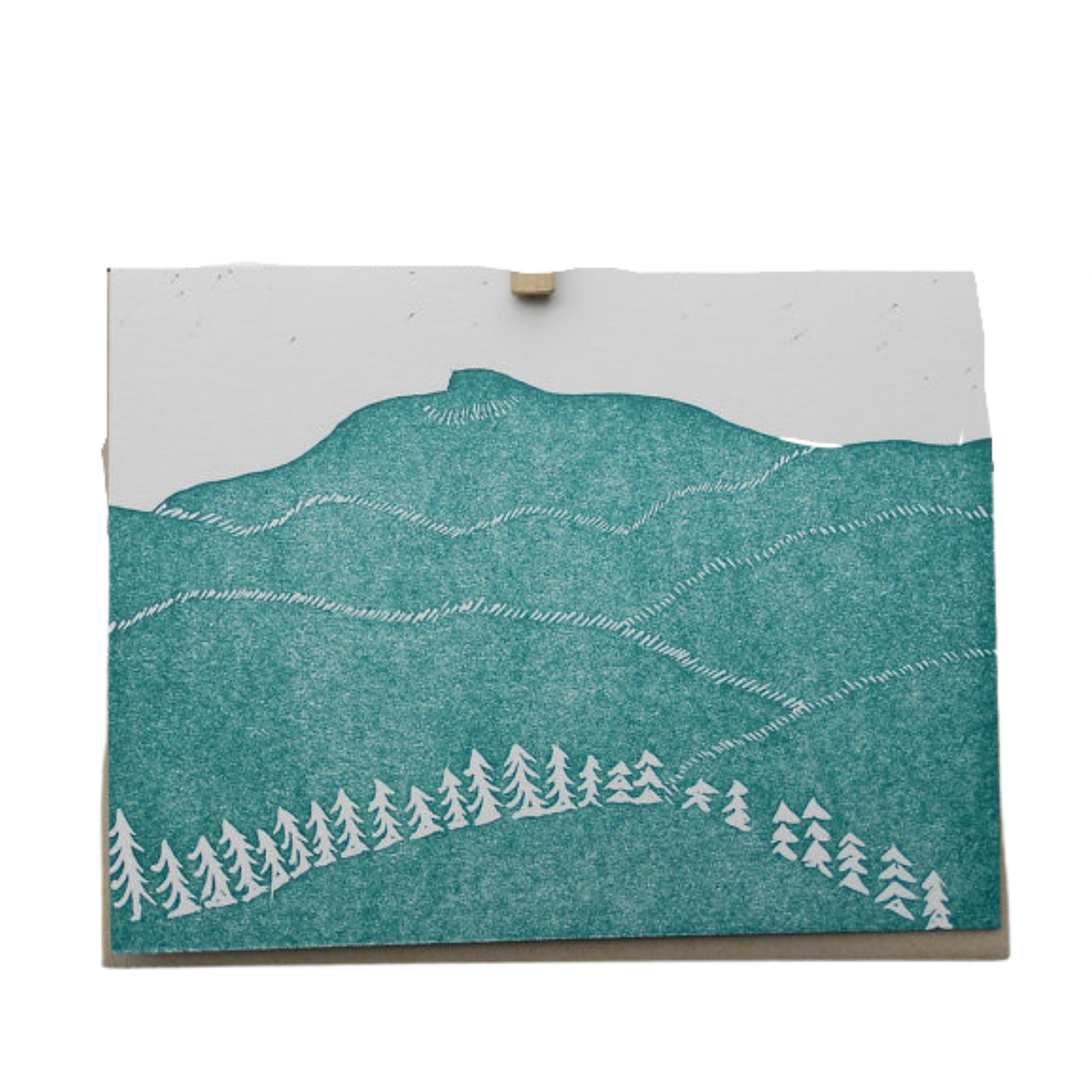 Share a little piece of Vermont! This lovely letterpress card features the iconic silhouette of Camel’s Hump rising above the Green Mountains, printed in rich emerald ink on creamy cotton paper. Hand-carved and hand-printed, each card feels like a tiny keepsake celebrating our beautiful backyard.