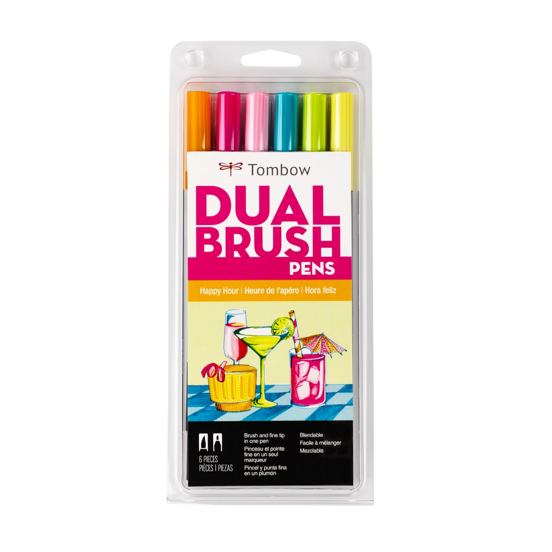 Dual Brush Pen Art Markers: Happy Hour, 6-Pack