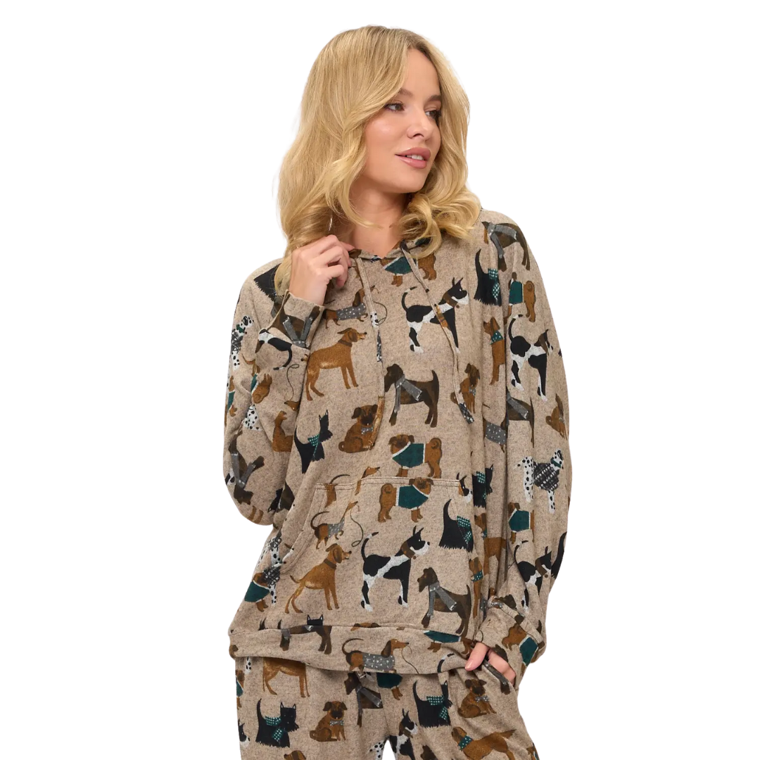 Colorful Graphic Dogs Print Zip Up Hoodie