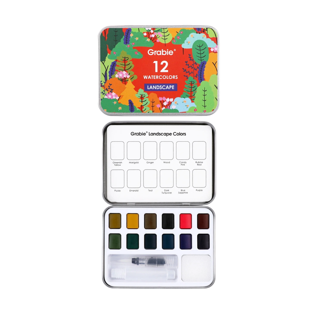 Watercolor Pocket Set of 12 with Brush - Landscape Colors