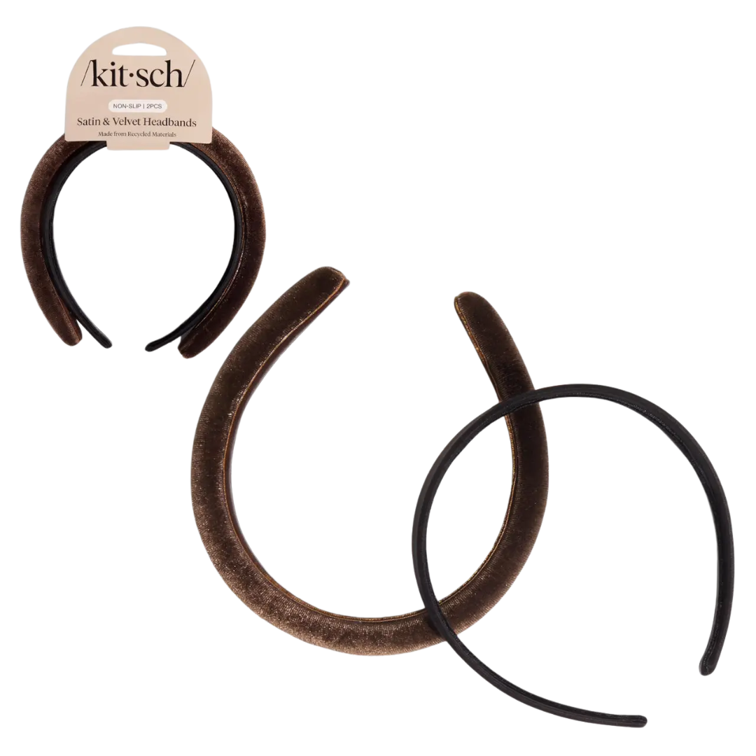 Recycled Fabric Satin & Velvet Headbands 2pc Set